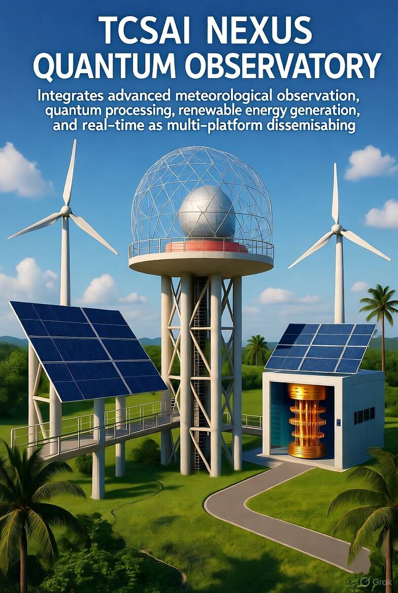 The TCSAI NEXUS QUANTUM OBSERVATORY is a comprehensive tropical cyclone observatory. A complete technology hub that integrates advanced meteorological observation with quantum processing, renewable energy generation from cyclones, and real-time multi-platform dissemination.